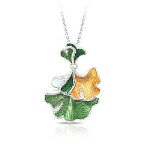 Belle Etoile Gingko Pendant - White & Gold & Green