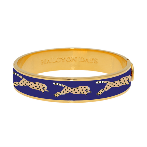 Halcyon Days - 13mm Leopard - Deep Cobalt - Gold - Hinged Bangle