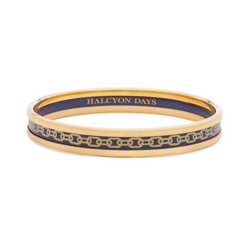 • Halcyon Days Skinny Chain Deep Cobalt & Gold Enamel Bangle