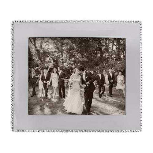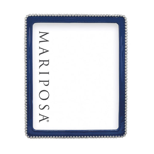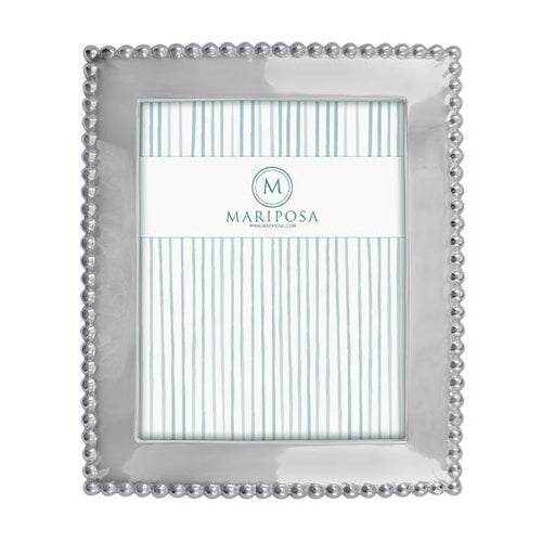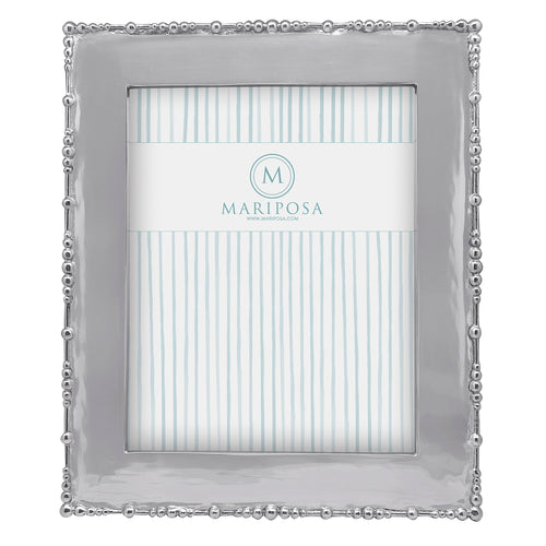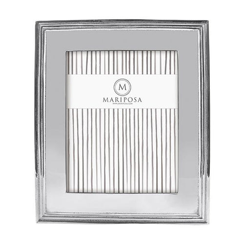 • Mariposa White Leather with Metal Border 8x10 Frame