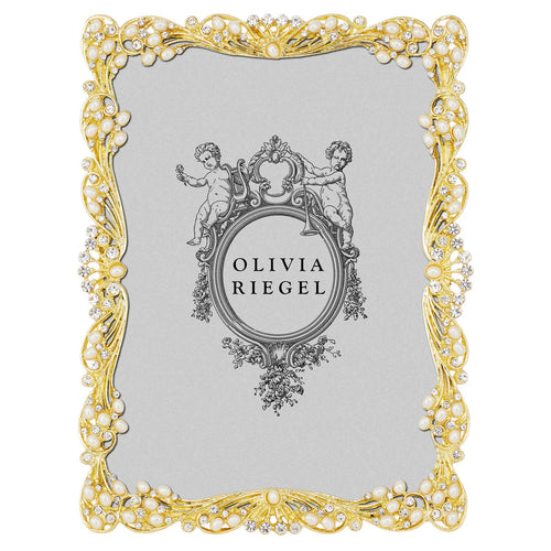 Olivia Riegel Gold Audrey 5" x 7" Frame with Capri Blue Stones & White Freshwater Pearls