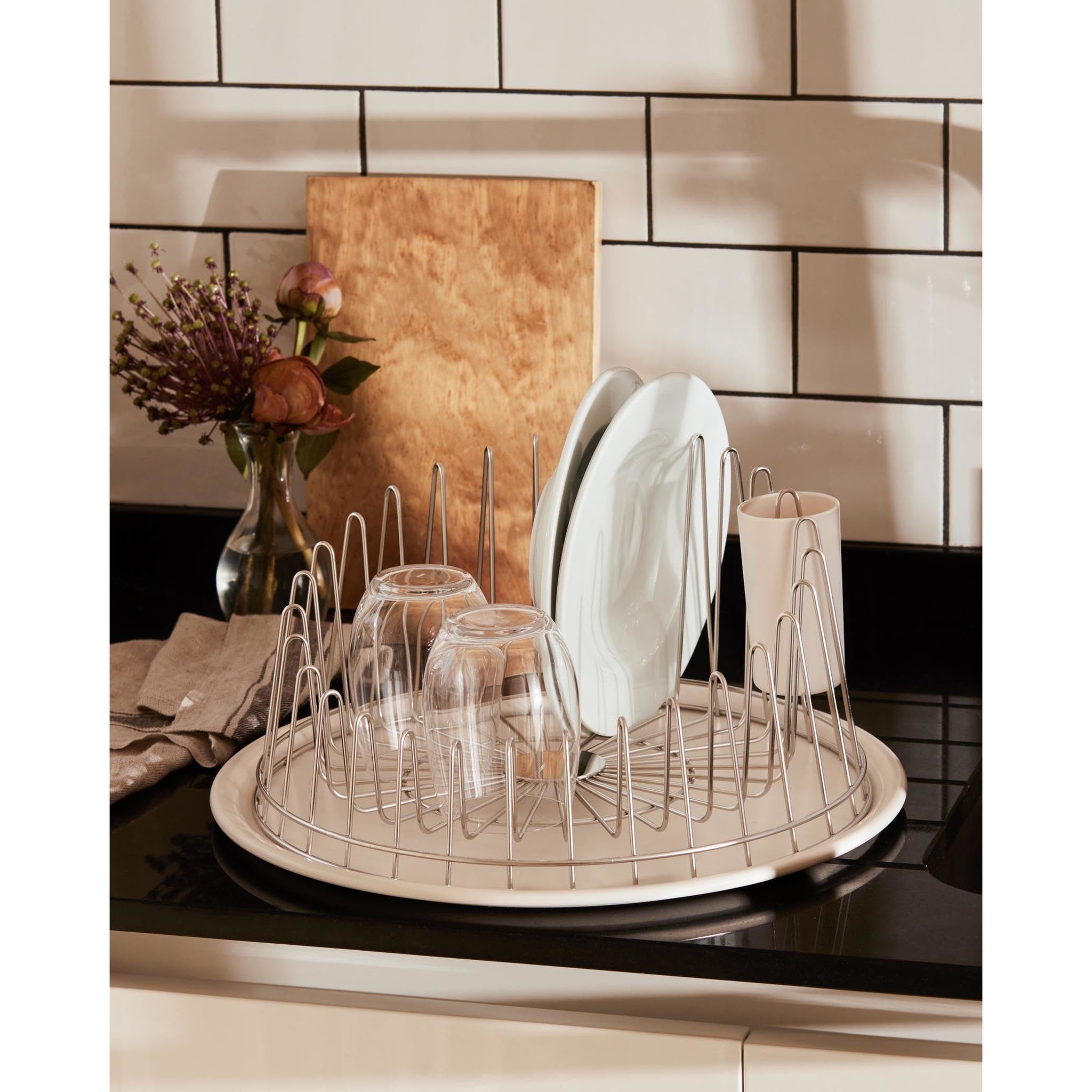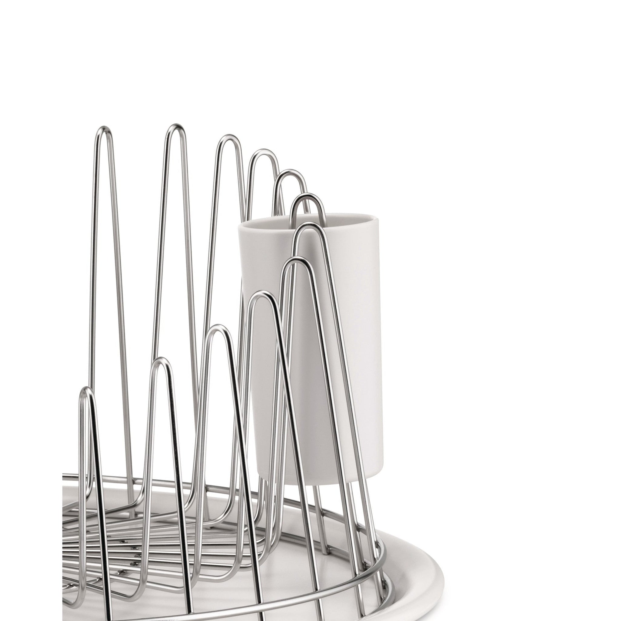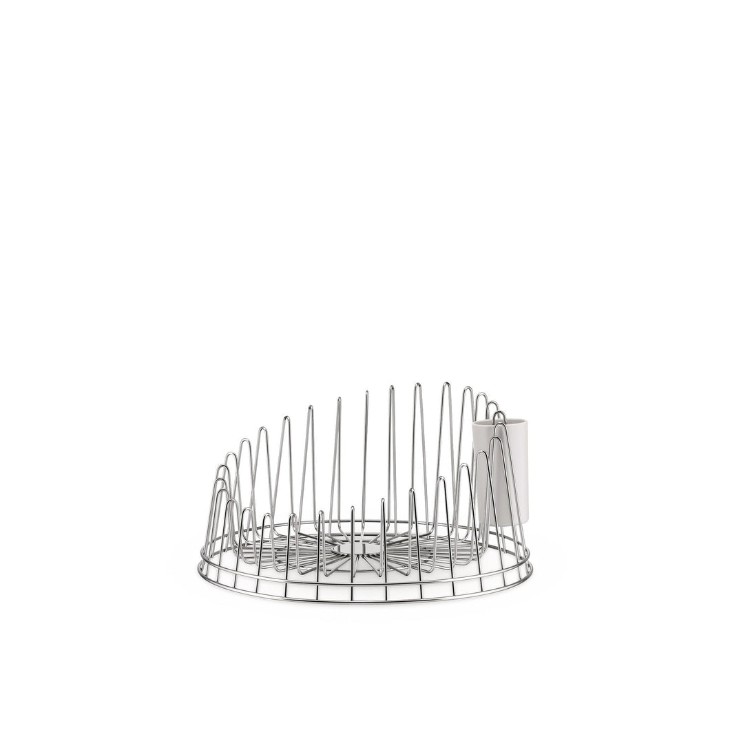 Dish drainer in 18/10 stainless steel with cutlery drainer in thermoplastic resin.