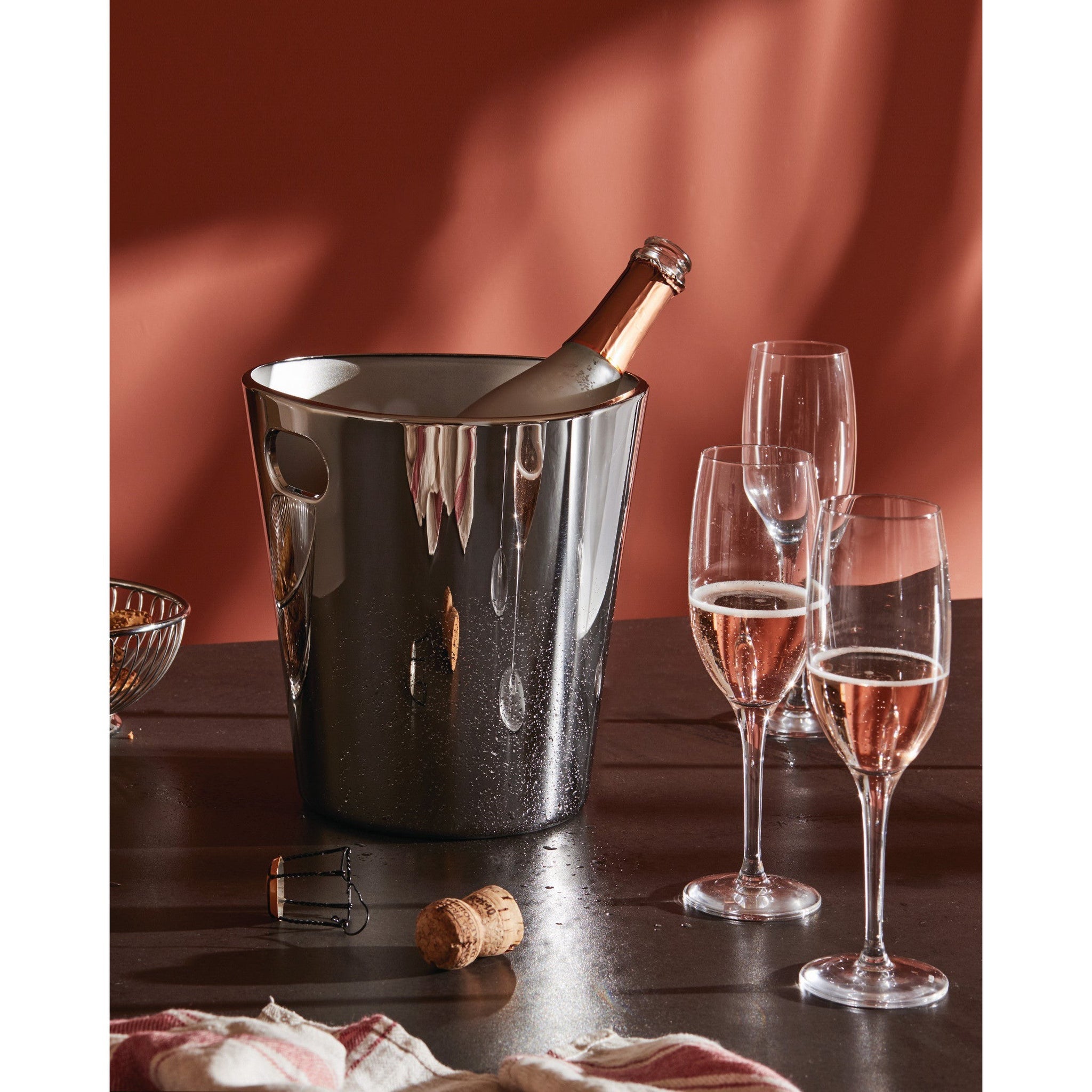 Wine cooler in 18/10 stainless steel.