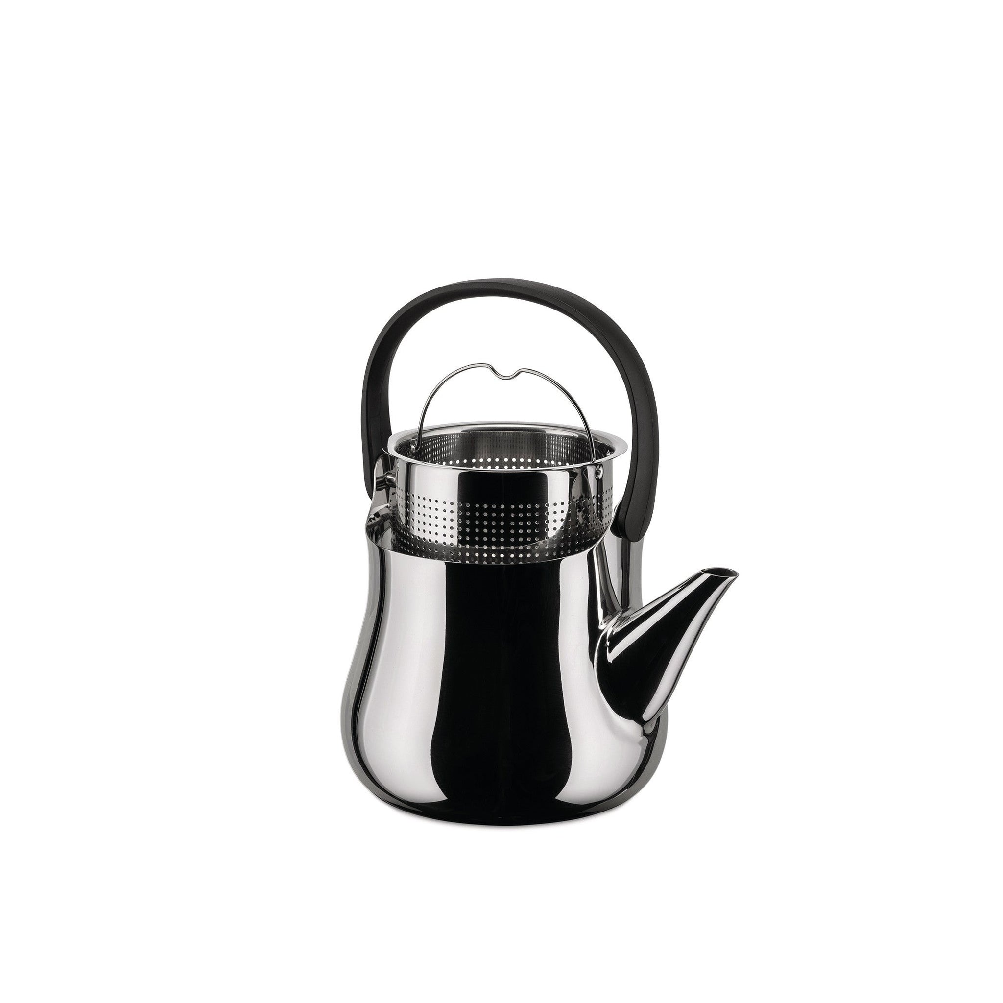 Kettle/teapot in 18/10 stainless steel and thermoplastic resin. Magnetic steel bottom suitable for induction cooking.