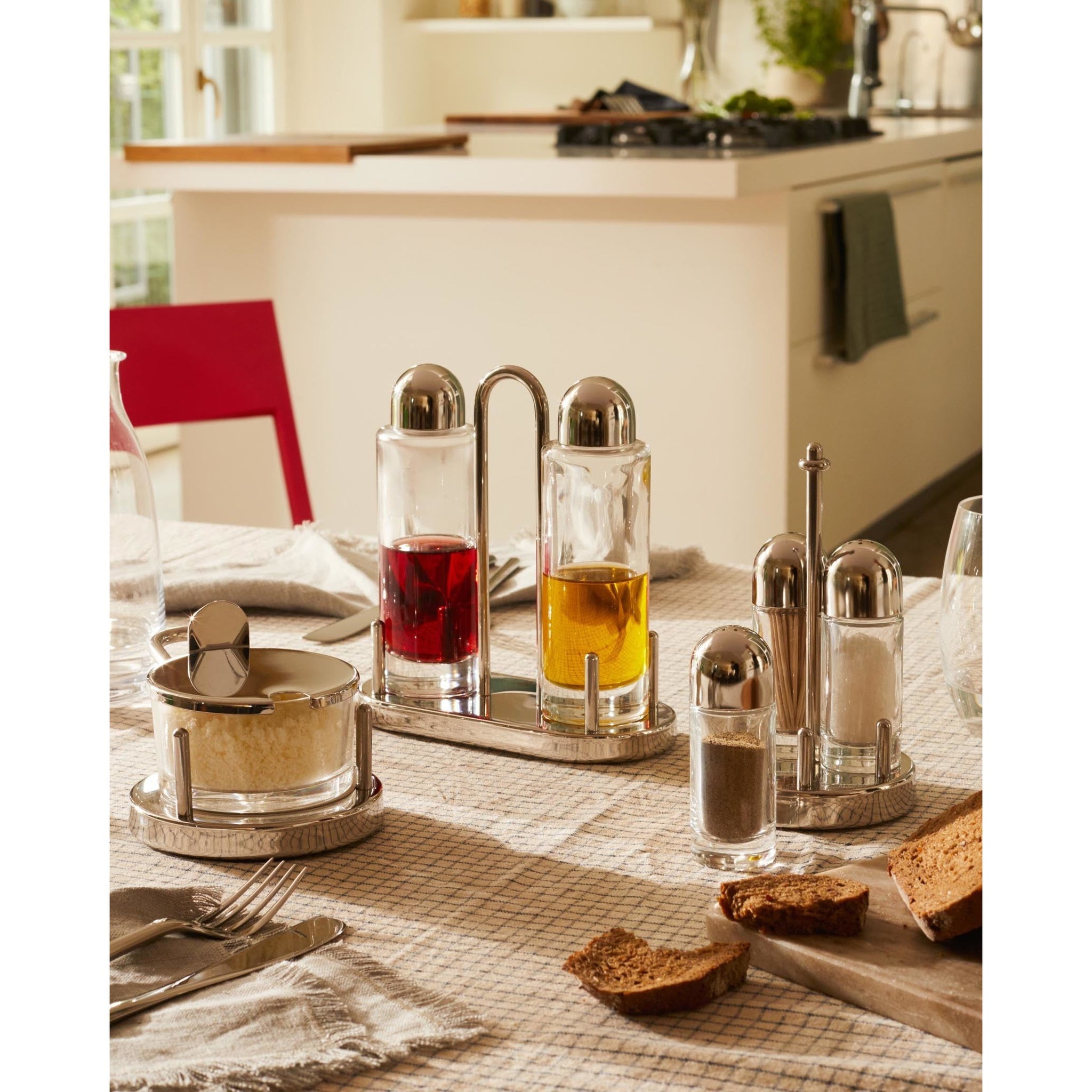 The 5071 parmesan cheese cellar is a testament to the inspiration of Ettore Sottsass who with a few simple lines can exalt the archetypical look and materiality of an object as common as a parmesan cheese cellar.Parmesan cheese cellar in 18/10 stainless steel and glass.