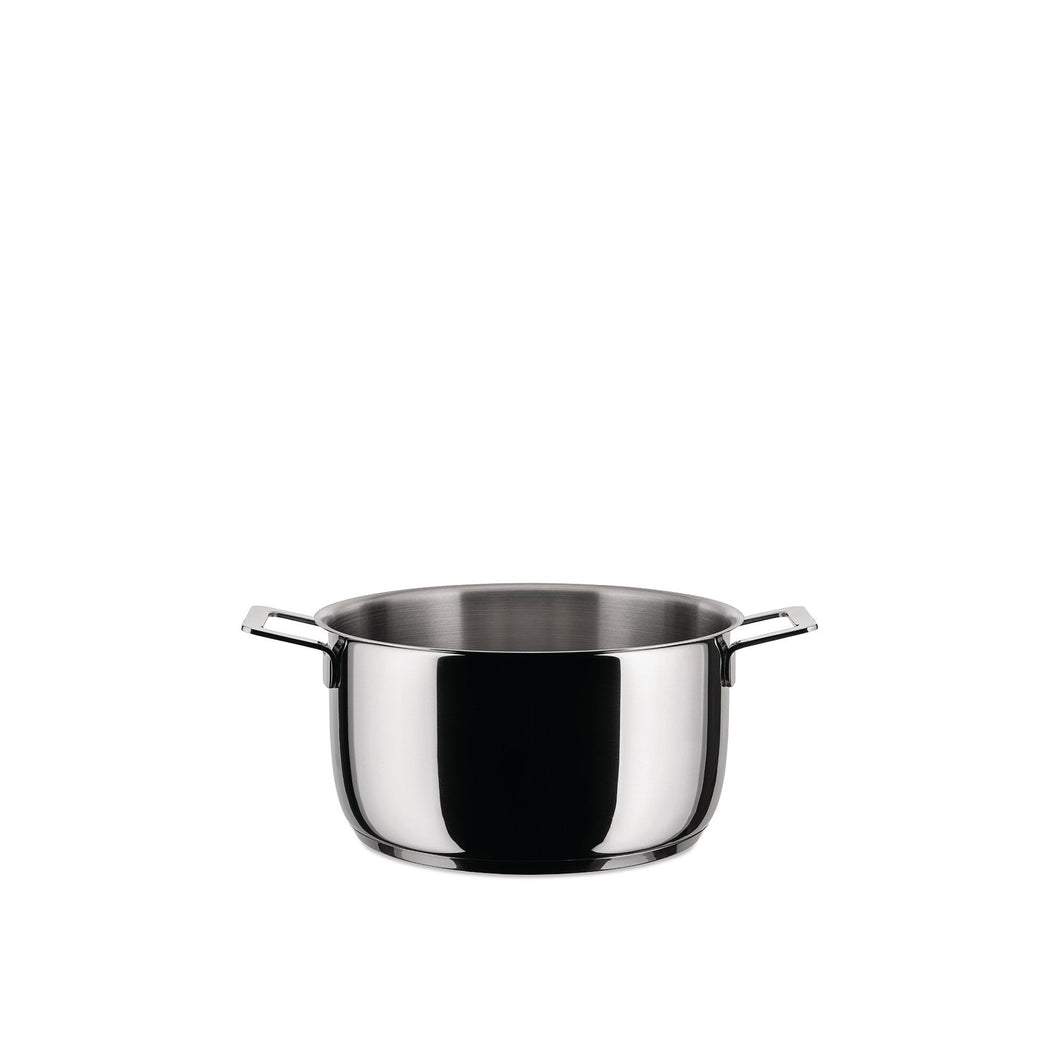 Casserole with two handles in 18/10 stainless steel. Magnetic steel bottom suitable for induction cooking.
