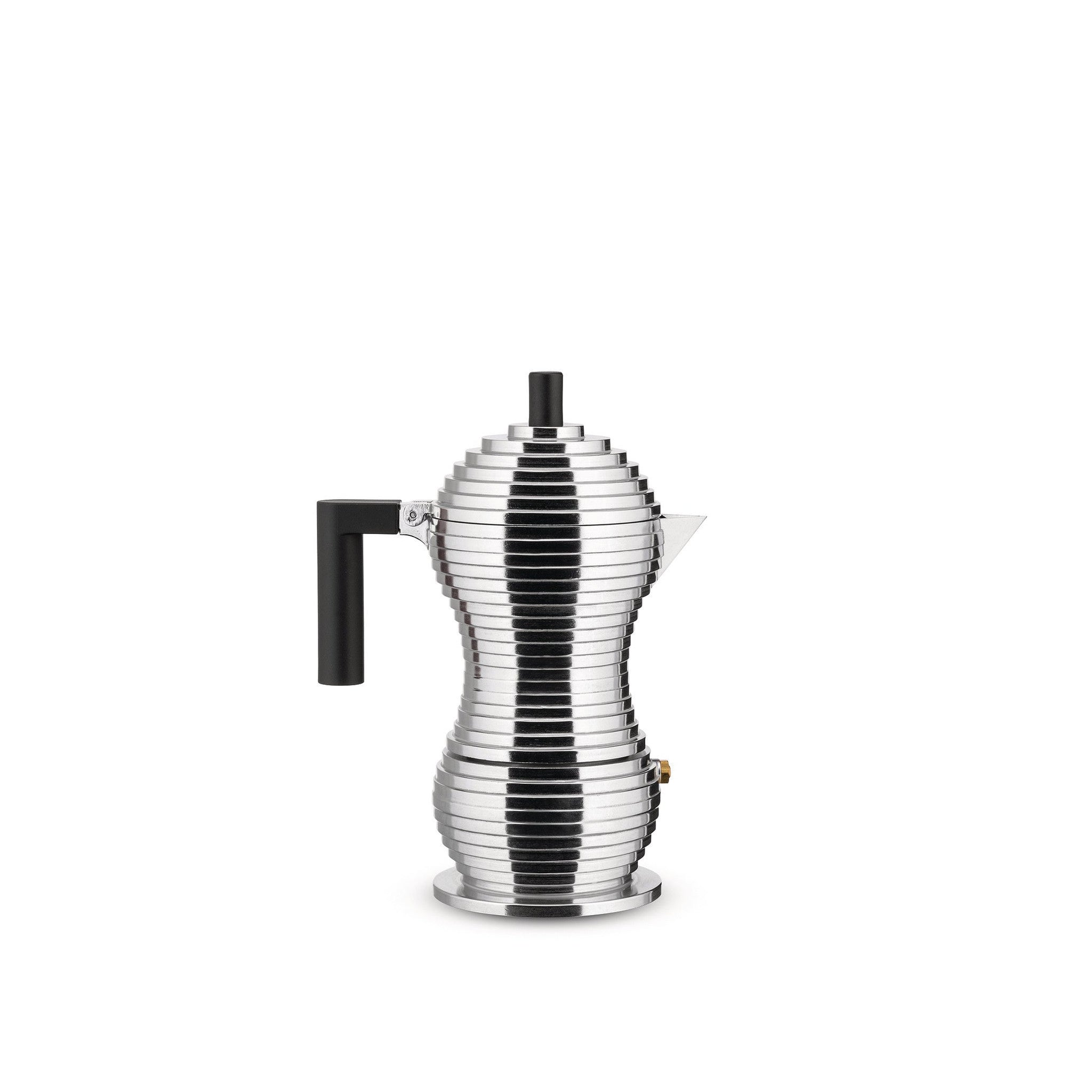 Designed by architectural visionary Michele de Lucchi, the Pulcina Espresso Coffee Maker encapsulates a small but substantial design innovation that stops dispensing the drink at the right time before the coffee gets a bitter aftertaste. This helps to enhance the full and rich aroma of your espresso. The spout, which recalls a chick's beak (hence the name of the coffee maker - "pulcina" = "chick") allows it to perfectly stop the drop.