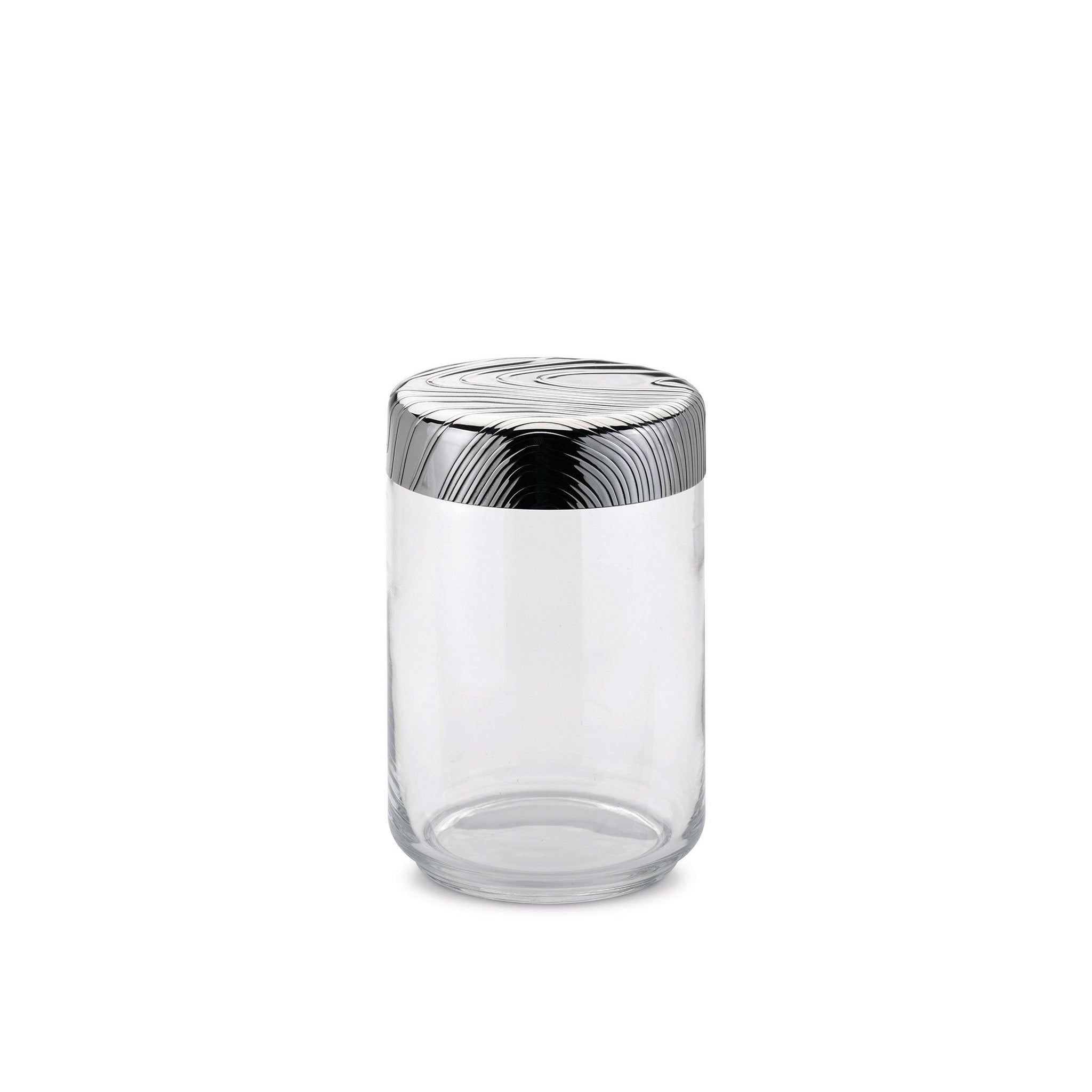 A dreamy and distinctive decoration makes the Veneer glass jars some special pieces of furniture. The refined container has a glass body that permits to see the content.Glass jar. Hermetic lid in 18/10 stainless steel with relief decoration.