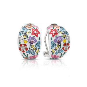 Description: Hand-painted multicolored Italian enamel with pavé-set stones set over platinum-plated, nickel allergy-free, 925 sterling silver.