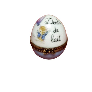The Blue Dents De Lait Egg "Baby Teeth" Limoges Box is artfully and colorfully hand painted by premier artists using many of the same techniques that were used during their introduction in the 17th century. Steeped in history, Limoges boxes feature exquisite designs, superior workmanship, and the ultimate attention to detail.