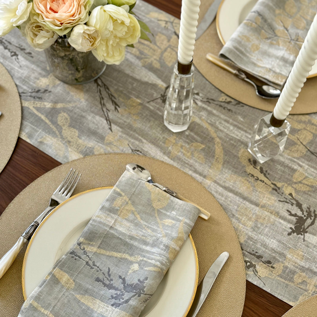 Inspired by the beauty of southern France, Avignon collection will add an elevated elegance to your table, with their detailed beauty and airiness. 3 gorgeous metallic colors. They pair great with our Luster and Skate placemats.