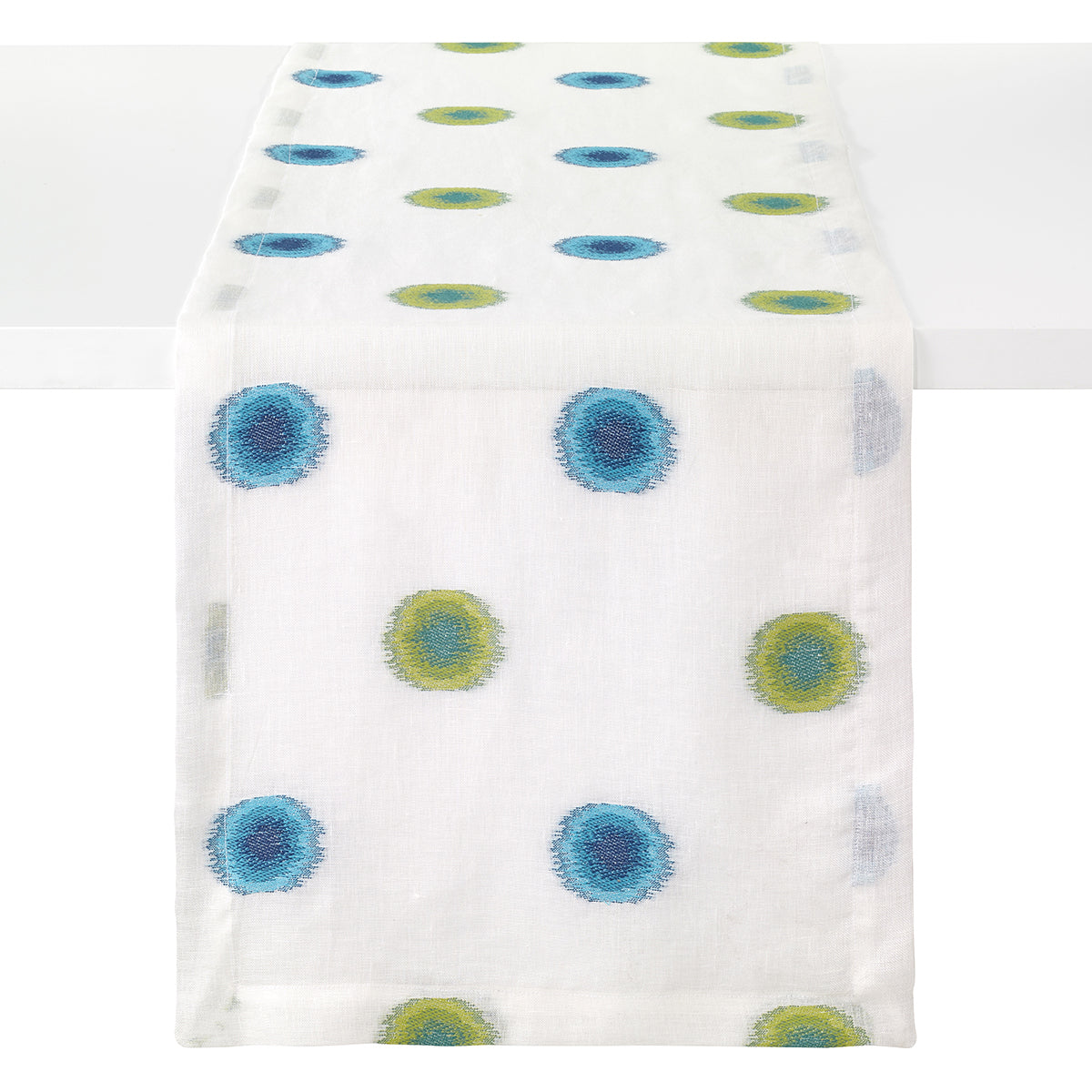 An explosion of color to brighten up any table! Bright jewel tones on a white linen blend. Available in napkins and runners. Looks great with our bright colored easy care mats. Available in 5 great color combos.