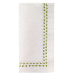 This napkin collection was made to be the perfect match to one of our most popular placemat collections, Pearls. Beautiful off-white napkins with elegant "pearl" embroidery in multiple colors.