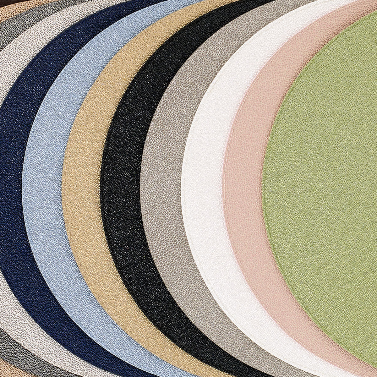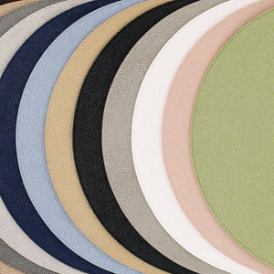 Sturdier than our other mat groups, made with a shagreen finish and 16" as opposed to 15" rounds, the Skate collection is one of our most luxurious Easy Care Mat groups. Decorate your table with this collection and you are set to impress! Great selection of sophisticated colors and easy to clean. Also available as coasters, trays and napkin rings to complete the look.