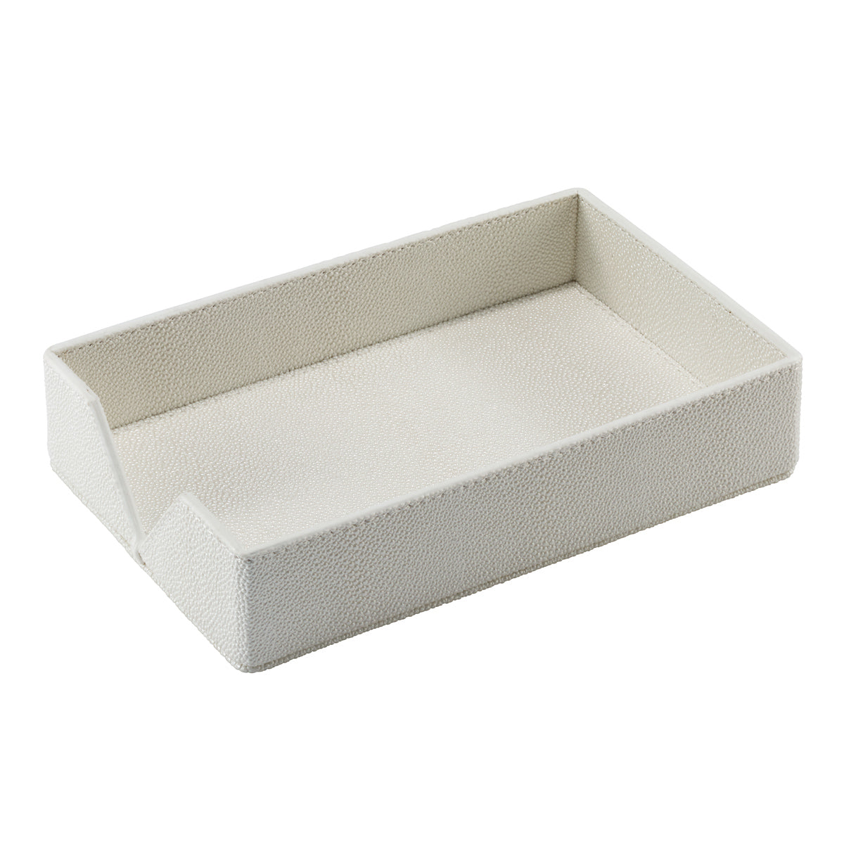 Featuring the same material used in our Stingray Placemats, this brand-new easy-care Bath Accessories line will bring an exotic touch into your room. They are soft to the touch, while featuring a sparkling metallic finish that’s a sure way to elevate any environment! Ideal for gifting friends with excellent taste! Available in Tissue Box, Vanity Tray, Soap Dispenser, Guest Towel Box, and Waste Basket.