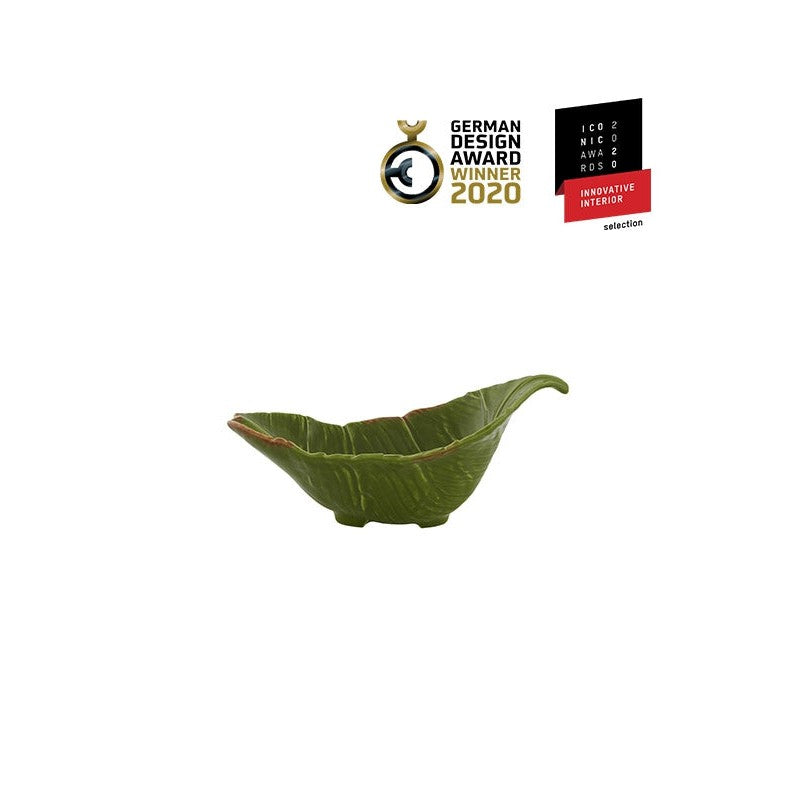 Developed in partnership with Nini Andrade Silva, born in the island of Madeira, and one of the most famous interior designers worldwide, this new collection pays tribute to one of the island's icons, the banana tree. Various features, such as its dark wrinkled bark, large verdant leaves, delicate stem, and the banana itself are masterfully transformed into large platters and trays, small bowls and cups, gorgeous centrepieces and pitchers which recreate a tropical environment.