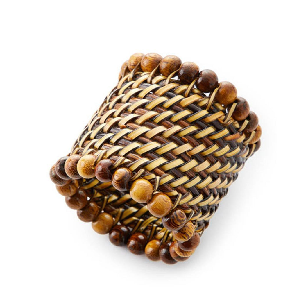 Calaisio Dark Walnut Napkin Ring with Beads - Set of 4