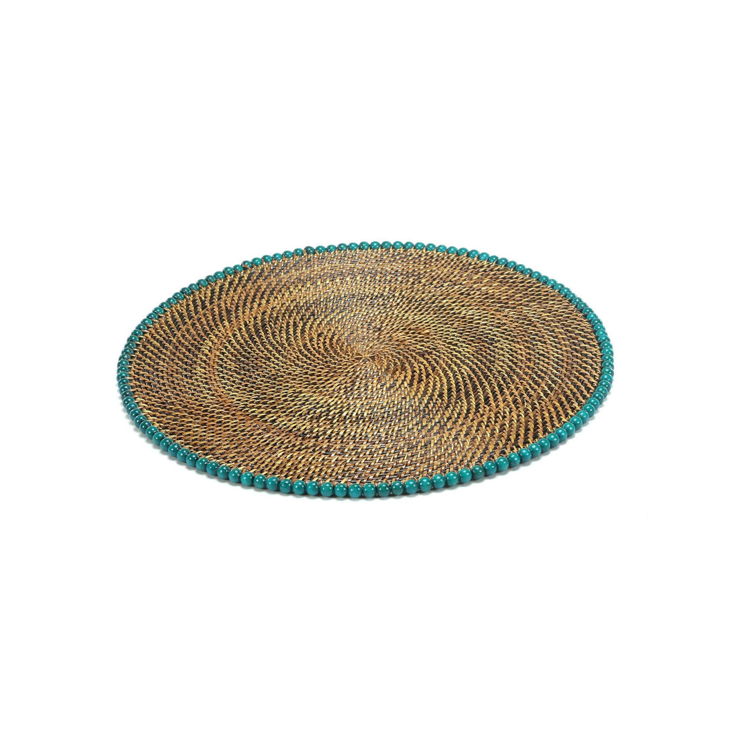 Calaisio Round Placemat with Beads - Sea Green, Set of 4