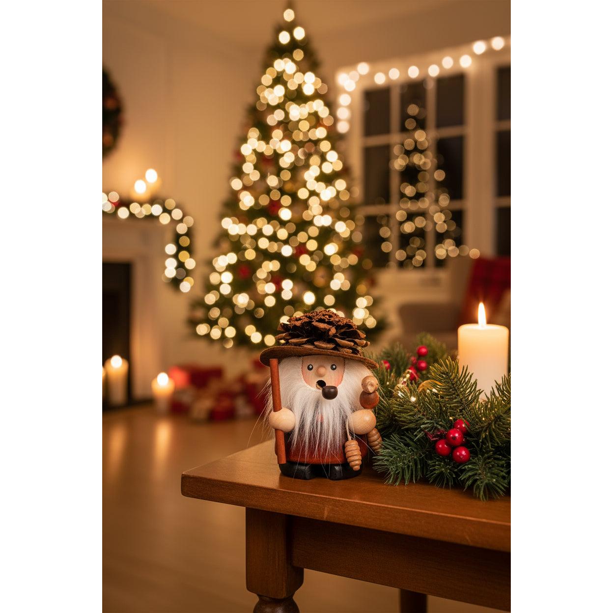 - The little cone man comes from deep within the Ore Mountains forest, as is easily recognizable by his hat and the cones in his hand. He carries a stick firmly in his hand for his journey over roots and stones, and a little bird accompanies him.