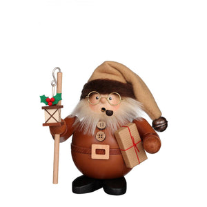 Christian Ulbricht incense burner - Santa Claus with a lantern and a gift (Natural Wood Finish)