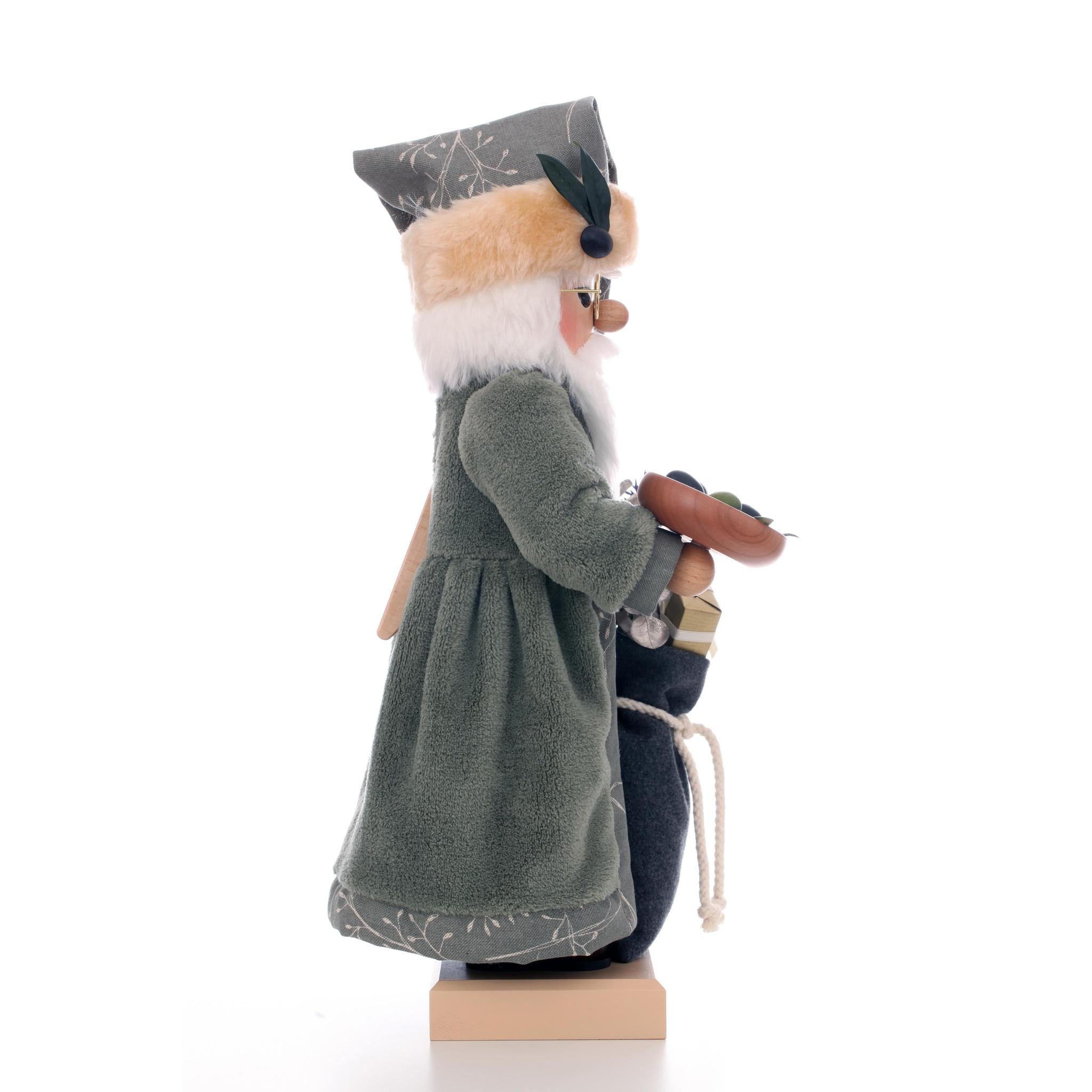 - He loves the Mediterranean, its region, and its cuisine. His olive-green clothing makes him the Santa Claus of the Mediterranean coast. The color-coordinated details complete his appearance. Along with his sack full of presents, he also brings a bowl of the finest olives. His noble appearance will bring harmony to your home.