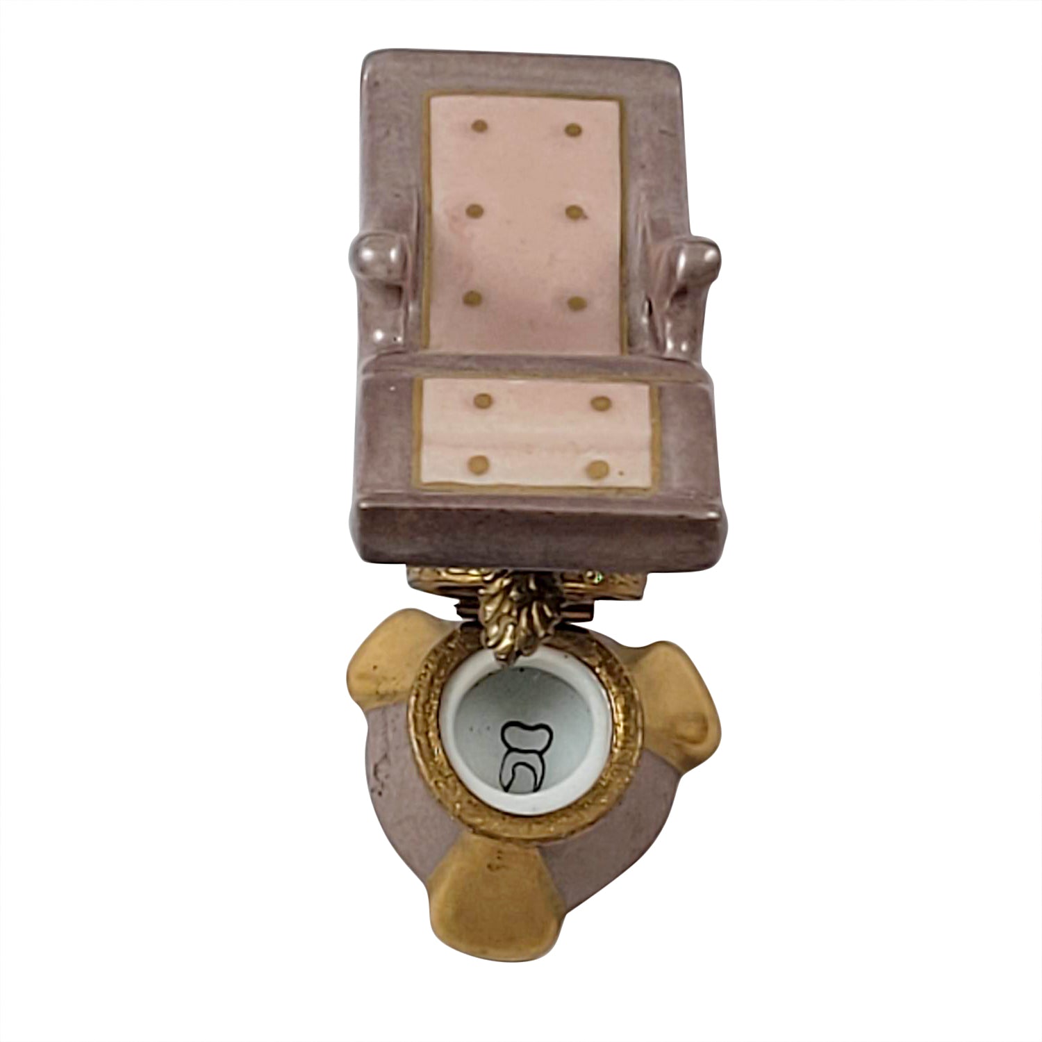 The Dentist Chair - Silver Limoges Box is artfully and colorfully hand painted by premier artists using many of the same techniques that were used during their introduction in the 17th century. Steeped in history, Limoges boxes feature exquisite designs, superior workmanship, and the ultimate attention to detail.