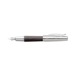 Chunky, almost cigar-shaped, the pen fits comfortably in the hand. The design combines outstanding writing comfort with sophisticated aesthetics. Barrel made of pearwood stained black. The cap is highly polished chromed metal with a spring-loaded metal clip. It quickly fastens on and off by a quick twist. High-quality stainless steel nib. Cartridge/converter system. Converter included. Cap is not designed to post.