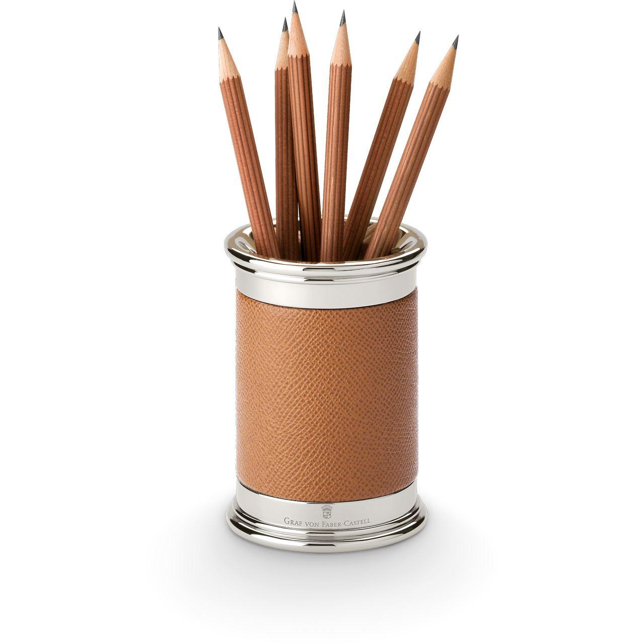 Whether it has to make a good impression or be purely practical and private, there are certain things that should never be missing on a well-equipped desk. Thanks to their clear, restrained design the desk accessories from the Graf von Faber-Castell Collection adapt to their surroundings - and yet immediately reveal that they are something special. Highly polished metal parts and grained calfskin leather sheaths set these desk accessories apart. Selected Italian calfskin is used for the leather accessories. Tough but supple, calfskin is a material that lends itself to fine crafting and is highly durable.