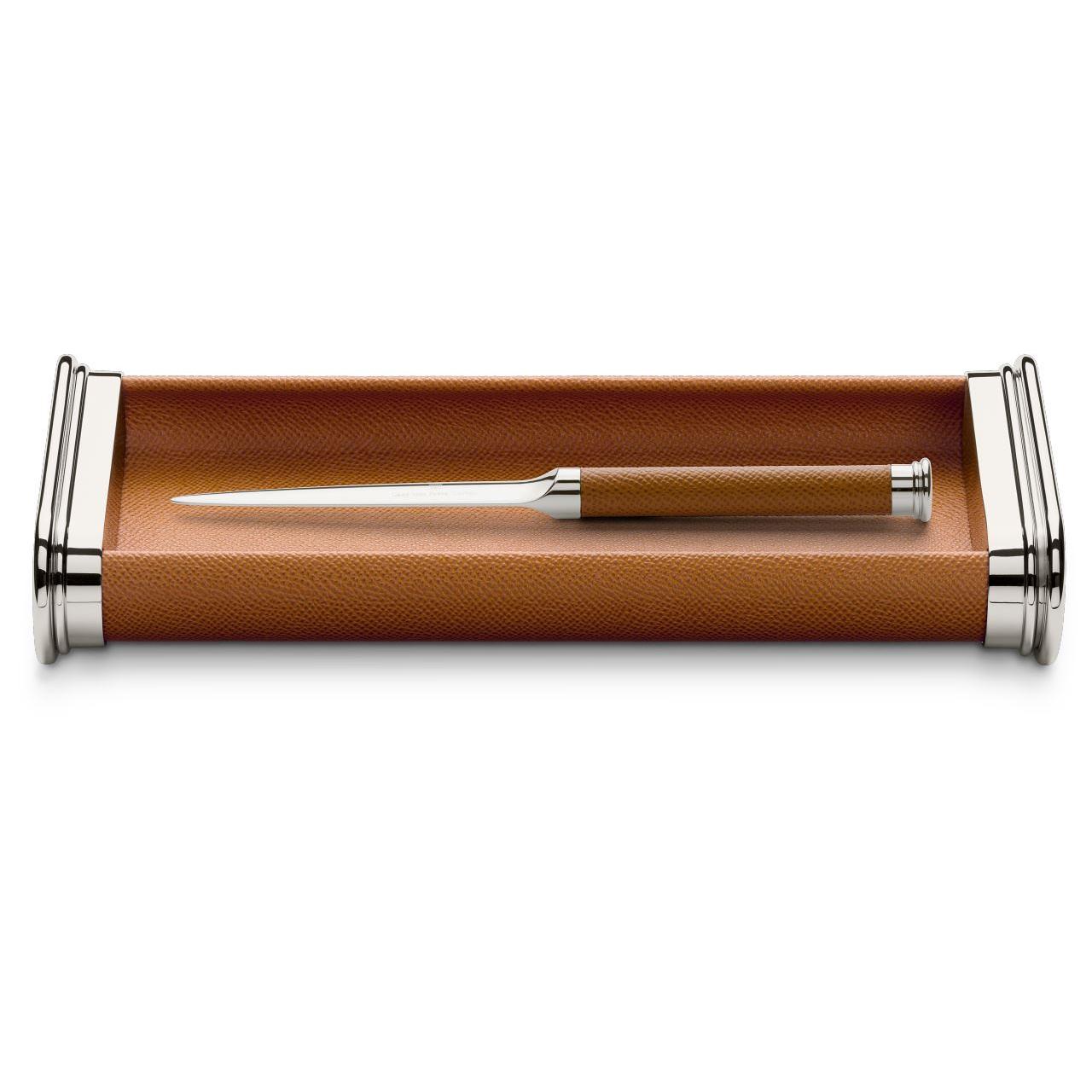 Whether it has to make a good impression or be purely practical and private, there are certain things that should never be missing on a well-equipped desk. Thanks to their clear, restrained design the desk accessories from the Graf von Faber-Castell Collection adapt to their surroundings - and yet immediately reveal that they are something special. Highly polished metal parts and grained calfskin leather sheaths set these desk accessories apart. Selected Italian calfskin is used for the leather accessories. Tough but supple, calfskin is a material that lends itself to fine crafting and is highly durable.