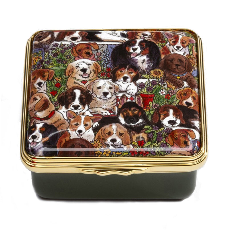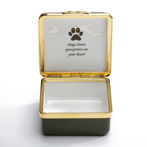 Crafted in England by our talented artisans, this enamel box features the message "Dogs leave pawprints on your heart". The perfect gift for any animal lover!