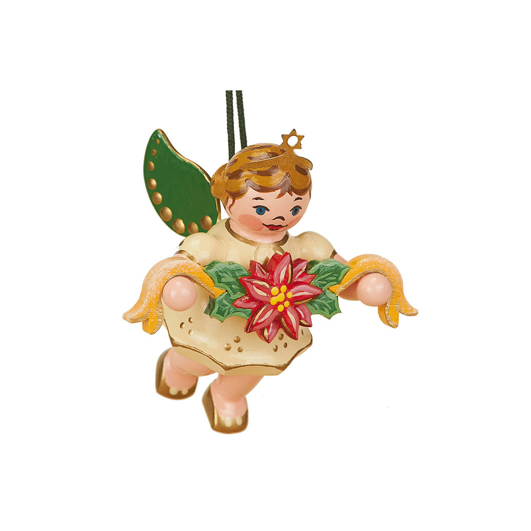 The Hubrig Volkskunst "Angel with Garland Ornament" is artfully and colorfully hand painted by premier artists in Germany.