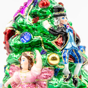 Capture the enchantment of the holiday season with our Clara and the Nutcracker Glass Ornament, crafted in Poland and dated with the year 2024. Adorned with intricate details, this ornament showcases Clara gracefully dancing in front of a festive tree, evoking a timeless sense of joy and celebration. The delicate hand-blown glass and hand-painted accents reflect the artistry and craftsmanship synonymous with Jay Strongwater. Embrace the magic of tradition with this enchanting ornament, a treasure to cherish for years to come.