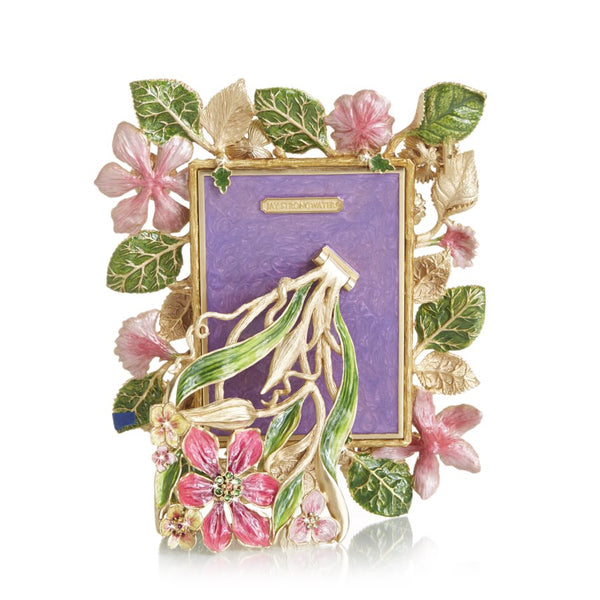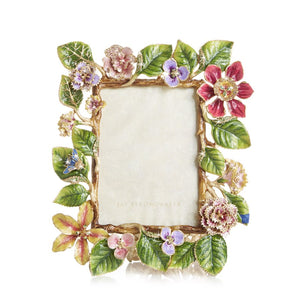 Our artistry shines with this gorgeous fusion of jeweled flowers and luscious leaves wrapped around the grand Lars Floral 5" x 7" Frame. A profusion of hand-painted lilies, pansies, and carnations pop against the verdant green leaves. Sparkling with Swarovski® crystals handset by our finest artisans in Rhode Island.