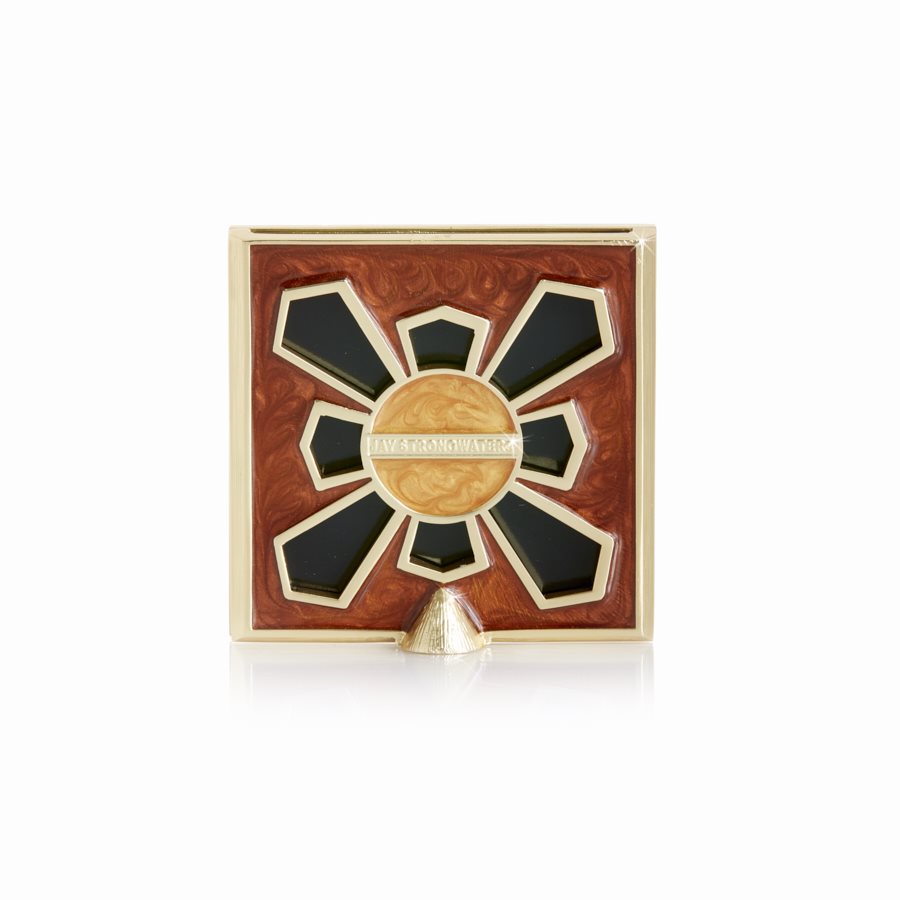 - Materials: Zinc cast, 14kt matte gold with light brown antique. Hand painted with enamel and hand-set with Preciosa crystals. Imported.