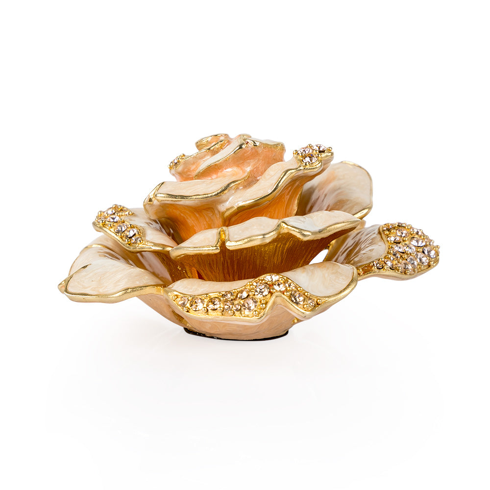 Nothing says romance quite like the allure of a perfect blush pink rose. Plated with 14K gold and pink European crystals, this exquisite bloom has been carefully hand-crafted by our master artisans to capture the dramatic natural beauty of a real rose. Enchanting on its own or as a standout in your display of other floral objets, our Rosie Rose Table Objet is both striking and sweet.
