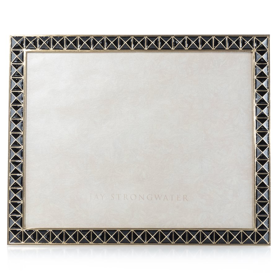 Enhance your favorite photos with this sleek and modern 8" x 10" frame. Hand-enameled in inky black and edged in rich 14K gold, this geometric frame is the perfect blend of classic styling, luxe details and modern edge.