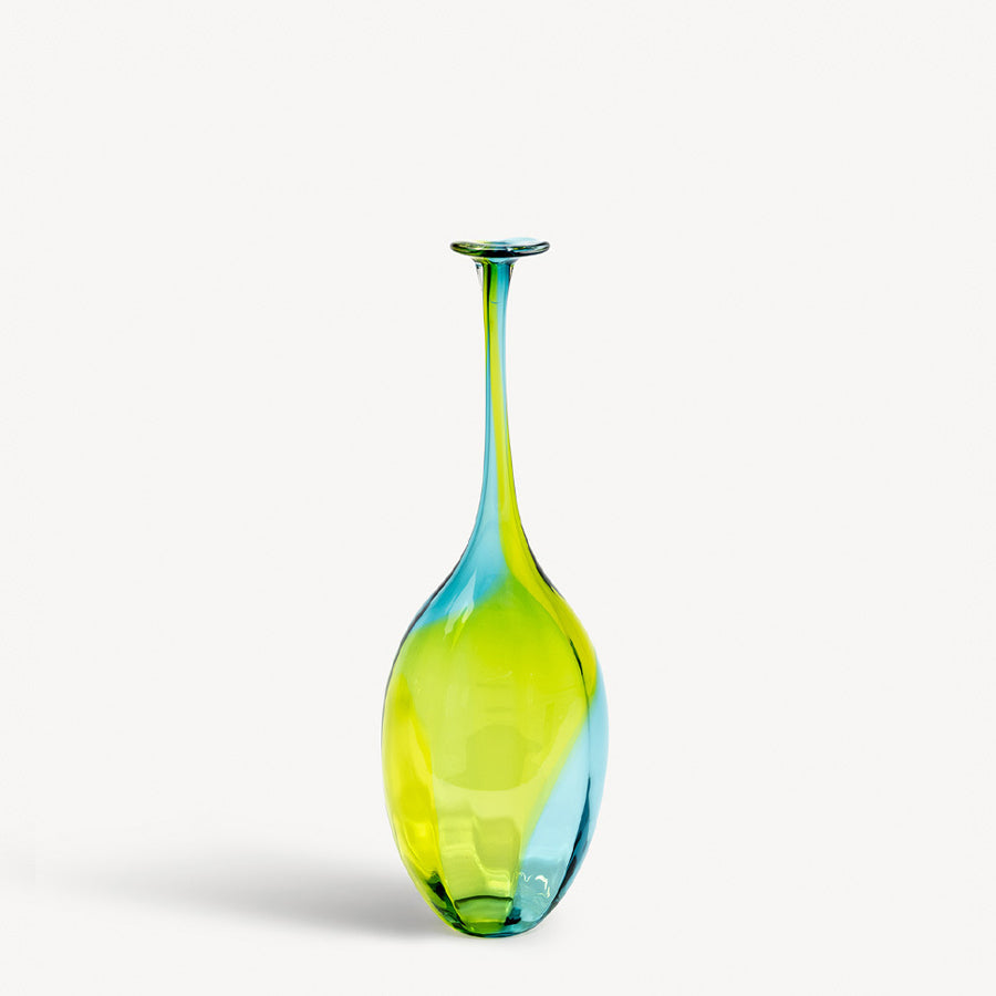With a background as a professional rock guitarist, musical influences play a large part in Kjell Engman's work. The Swedish glass artist has created Fidji, an object of multiple colors merged into one whose shape bears a resemblance to the musical instrument organ pipe. The extraordinary art object is handmade at Kosta Glassworks in Sweden and is part of the Kosta Boda Artist Collection.