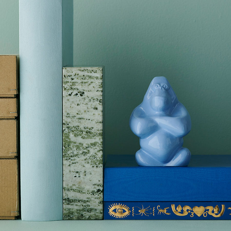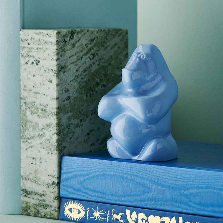 The gorilla invites each viewer to make their own interpretation of its mystifying exterior. That it demands attention is nevertheless indisputable. The glass sculpture Gabba Gabba Hey, here in a smaller version, is handmade in Kosta and its opaque surface is beautifully reflective. Design by Ludvig Löfgren.