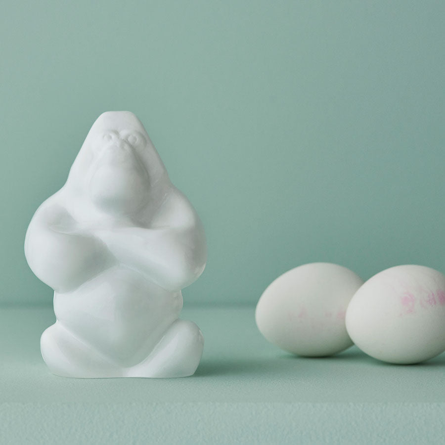 The gorilla invites each viewer to make their own interpretation of its mystifying exterior. That it demands attention is nevertheless indisputable. The glass sculpture Gabba Gabba Hey, here in a smaller version, is handmade in Kosta and its opaque surface is beautifully reflective. Design by Ludvig Löfgren.