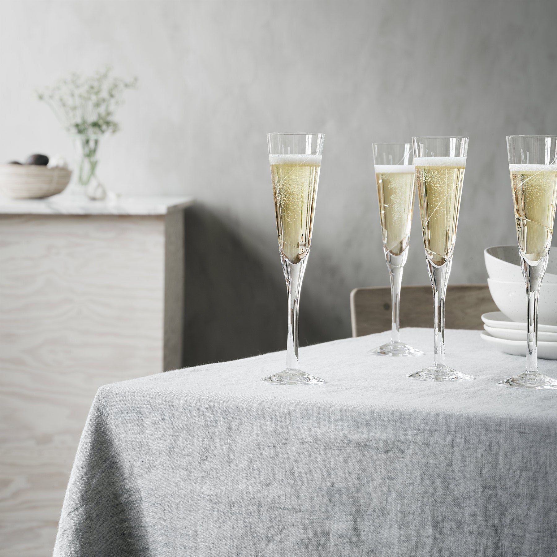 Line from Kosta Boda has been in production since 1982. The collection is unique, with a thread of spun glass applied on each product by hand - a symbol of high-quality Swedish craftsmanship from Kosta Glassworks. The mouth-blown champagne glass has a trumpet shape - and its narrow, tall bowl keeps the bubbles in the drink for longer. A glass perfectly in line with your style. Design by Anna Ehrner.