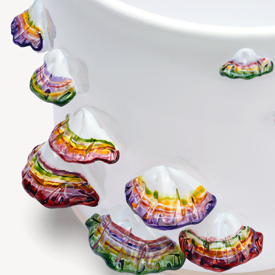 "I wanted to make something of my own, but with a connection to Ulrica's art. For the tribute collection, I was inspired by the directness of her approach and style. The vessel symbolizes a tree trunk. It's covered with modeled polypore mushrooms, called ‘Ticka' in Swedish - hence the name." - Ellen Ehk Åkesson