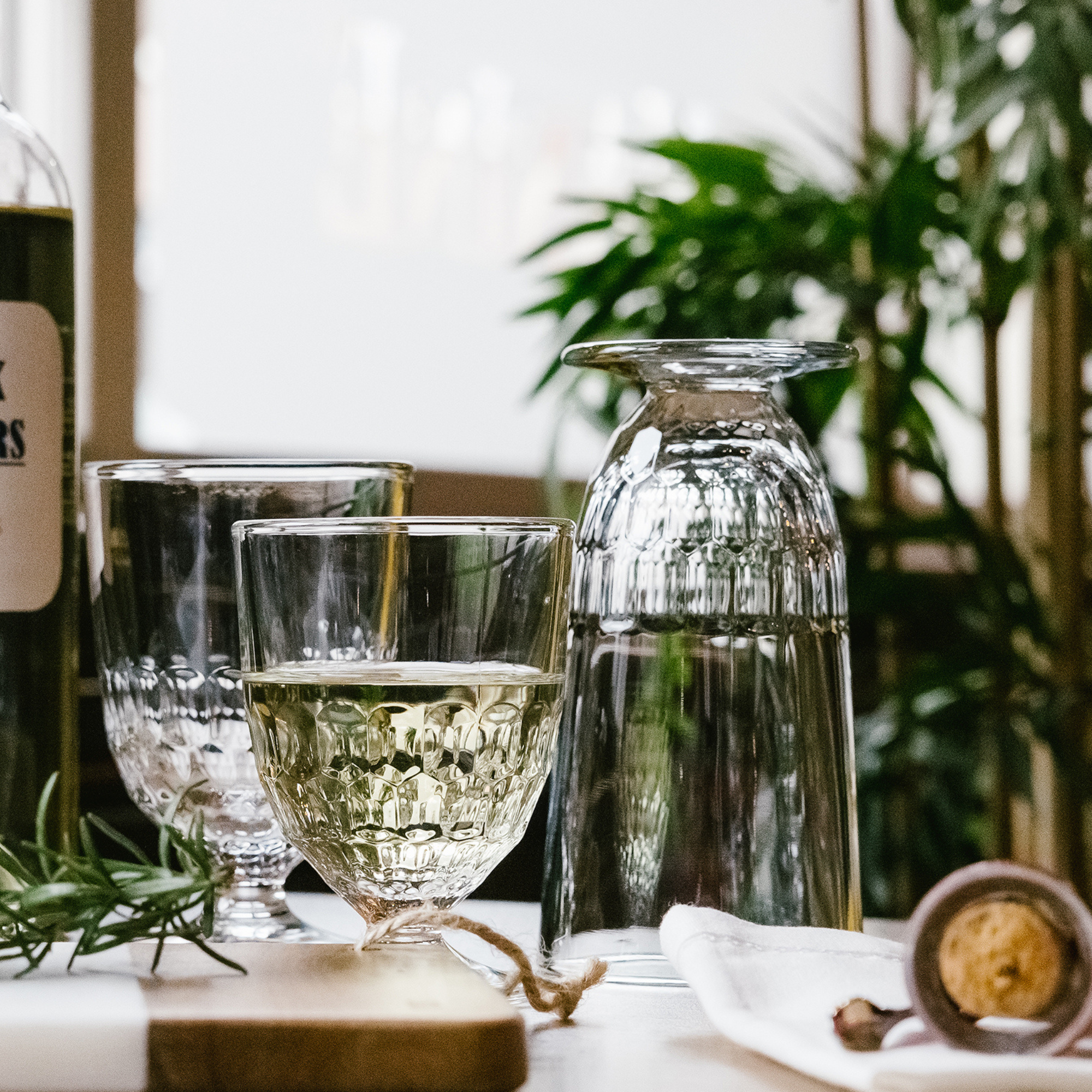Stylish and luminous, these tall footed tumblers make a sparkling presentation. Inspired by French daily living, they're perfect for everything from everyday juice to dressed-up cocktails.