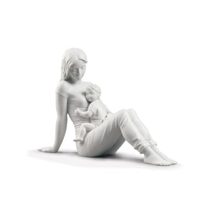 A Mother's Love is a porcelain figure that embodies the universal concept of motherhood, as seen from a current perspective: youthful and in an everyday position. Clothed in the manner of a new generation of mothers and in a pose that conveys spirit without losing the intimacy of the moment. It transports us to a primal feeling of a mother gazing at her son as he rests on her. With a gloss porcelain finish. Also available in gloss finish, but with colour. A perfect gift for Mother's Day or as a gift to a mother on the birth of her baby. Made in Spain