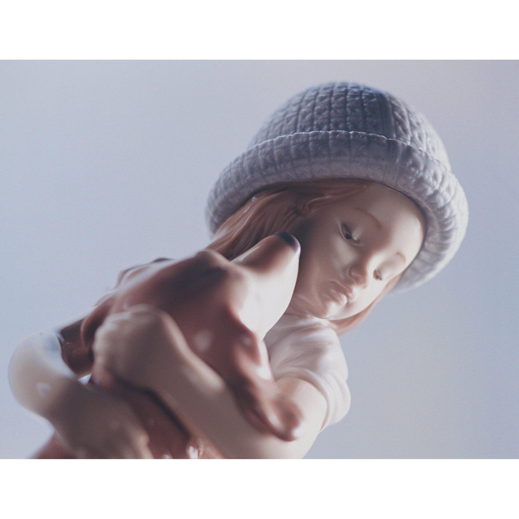 They're the best of friends. No one could greet the girl better than her beloved pet, overjoyed to be back by her mistress' side. A piece of glossy porcelain, decorated in pastel colours, ideal for giving, collecting or decoration.