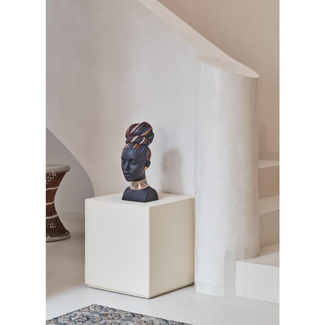 - Bust in black porcelain decorated in bright colors as a homage to African beauty