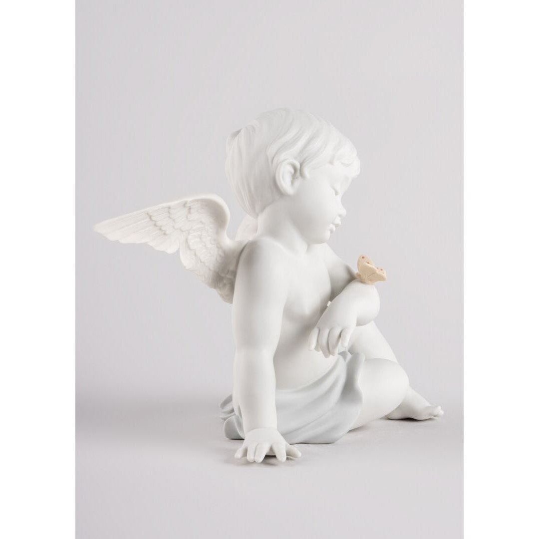 Angels, the stars of many creations coming from the Lladró workshops, now have a new depiction. A cherub, with perfectly executed facial features and exquisitely etched wings, looks in wonder at a cute little butterfly that has landed on his arm. Made in matte white porcelain with subtle notes of color, the scene produces tender emotions.