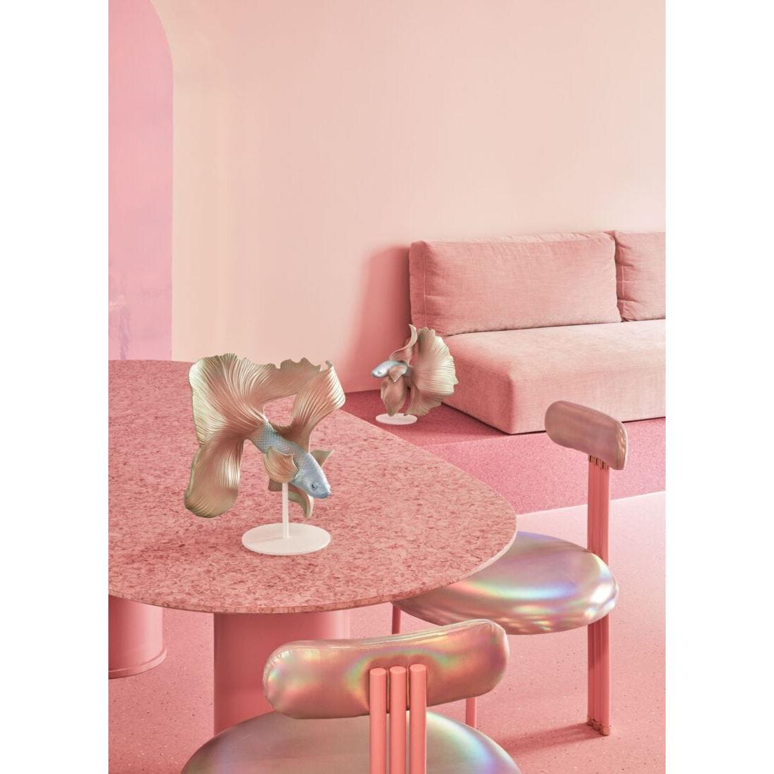 Among the incredible variety of shapes and colors of fish all over the world, the betta is perhaps the most highly appreciated of all. Its bright coloring and spectacular fins have made it a favorite of fish lovers. Thanks to porcelain’s great plasticity, Lladró artists were able to capture the fish’s delicate forms as they are swayed by the water and reproduce all the subtle pearly nuances in its coloring.