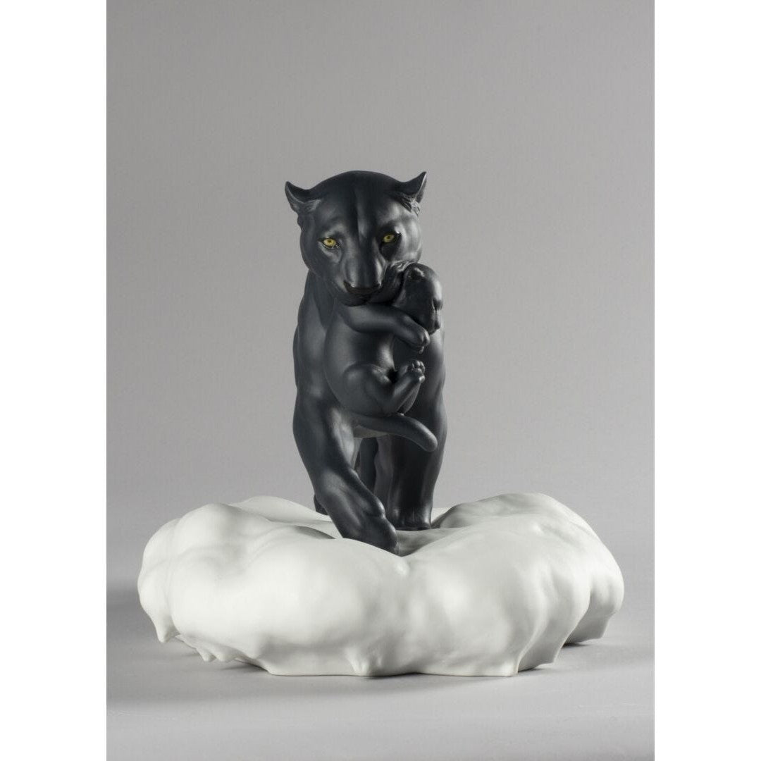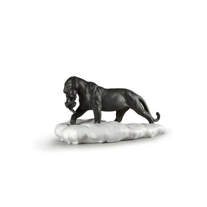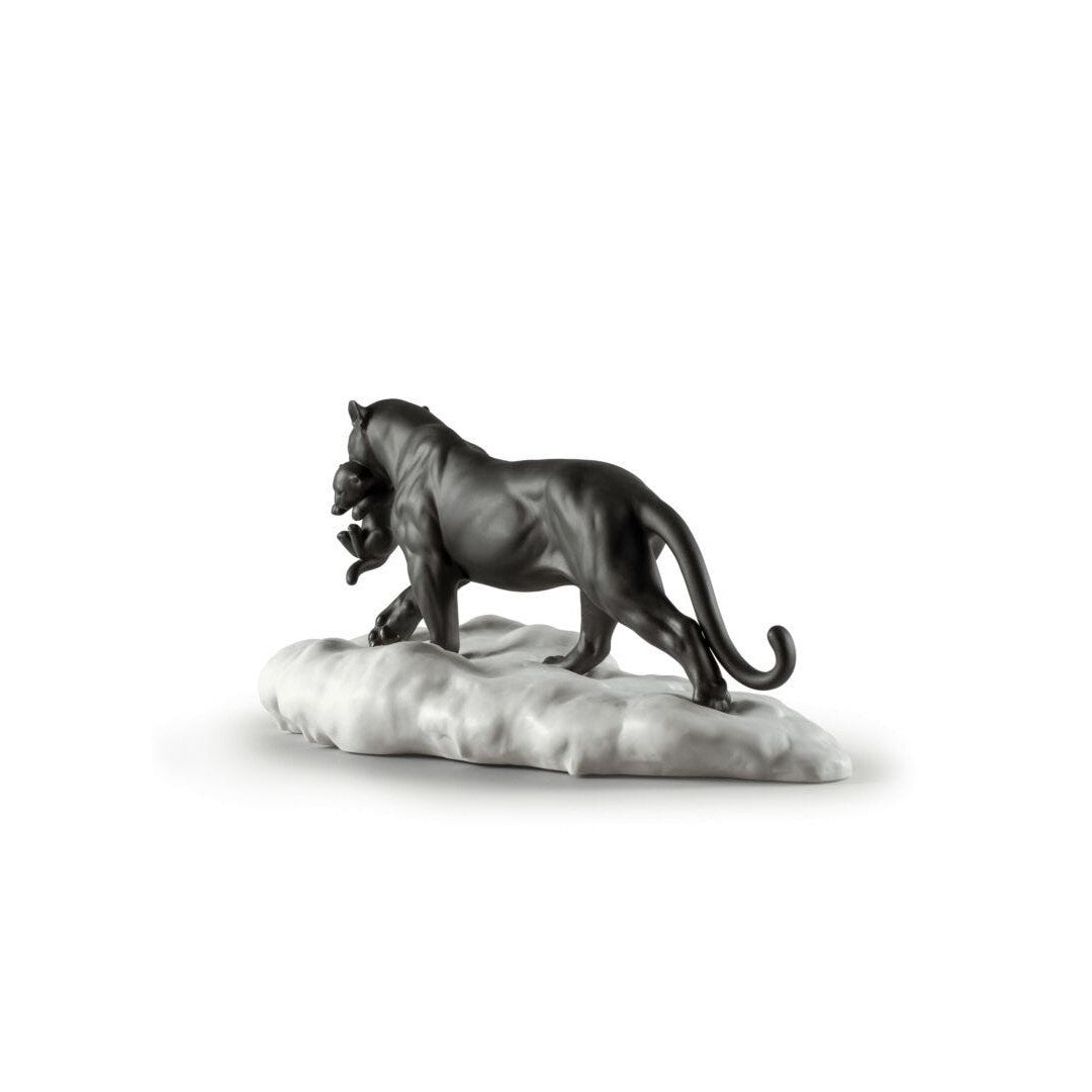 Lladró artists played with the contrasts of opposites in this elegant creation inspired by one of the most beautiful felines: fierceness and tenderness, the intense black of its coat on the pure white of the snow. A piece of matte porcelain finished with enamels, lending it great decorative potential. Handcrafted in Spain.