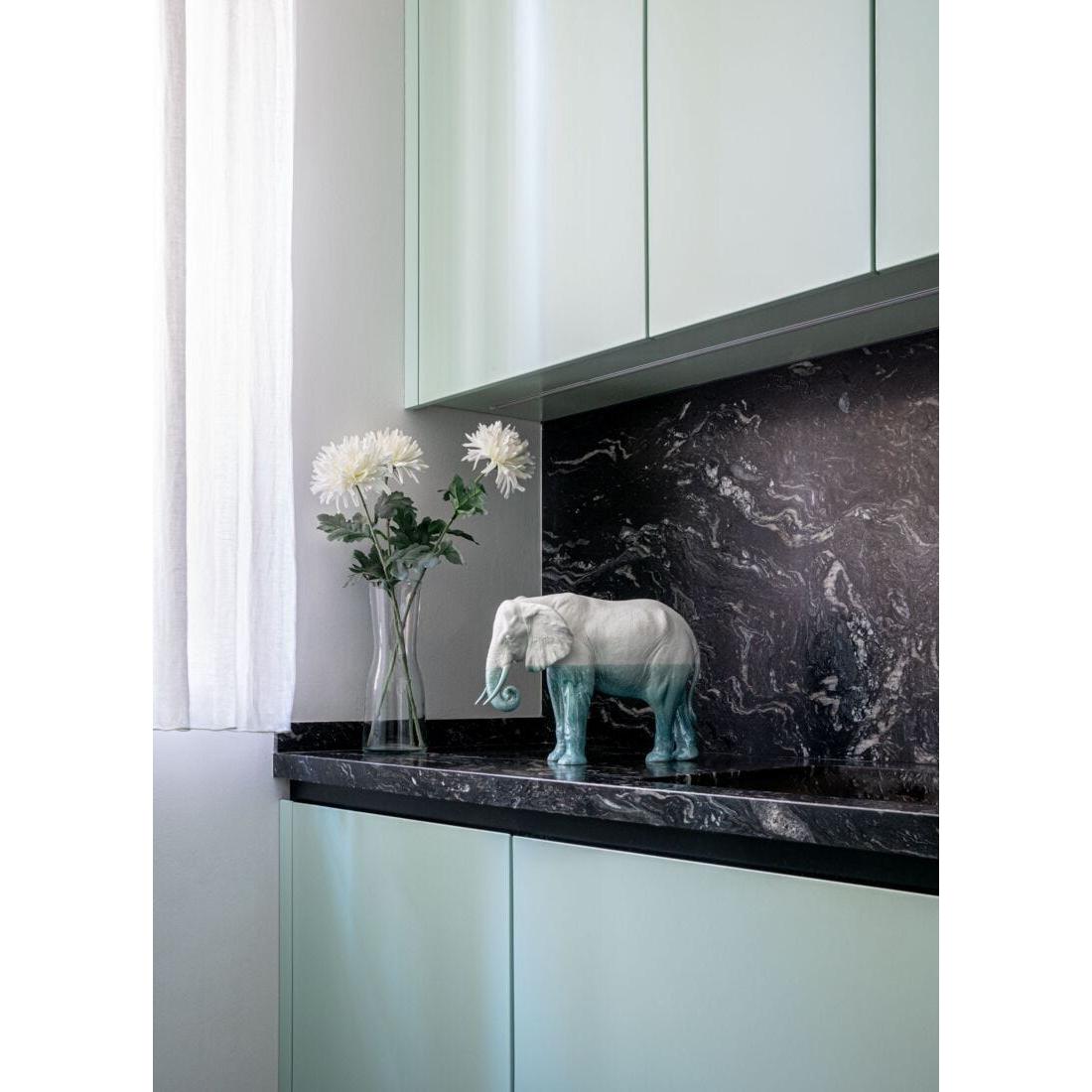 This new creation joins the Underwater collection, inspired by nature and water, the primeval element that gave rise to all life. It is a demonstration of how art, through the unique expression of porcelain, connects us with nature and celebrates it. Thanks to our artists’ consummate control of sculpture and the decorative techniques developed specifically for these pieces, Underwater offers us an unrivaled vision of the fusion between the animal kingdom and nature. The perfection of the forms is further enhanced by a pioneering decoration in degraded bluish tones that achieves an almost real effect of immersion in water. The end result, as can be seen in this elephant, is a series of contemporary creations that not only embellish, but also captivate with their magnificent handcrafted elaboration in porcelain and with their message. Elephant - Underwater is modeled in white matte porcelain, which highlights the texture of the animal’s skin and anatomy. To achieve the water effect of the decoration, the degraded color is applied from bottom upwards and is rounded off with pearlescent lusters.If you love animals and nature, Elephant - Underwater is the ideal creation for you. It also makes the perfect gift for that special someone you wish to surprise with a decorative design out of the ordinary.