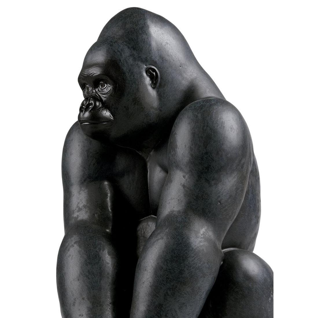 - Gorilla figurine made of porcelain stoneware with black enamels and a satin finish with different textures. He emphasizes his realistic face and reaffirms the position he takes when he remains seated.